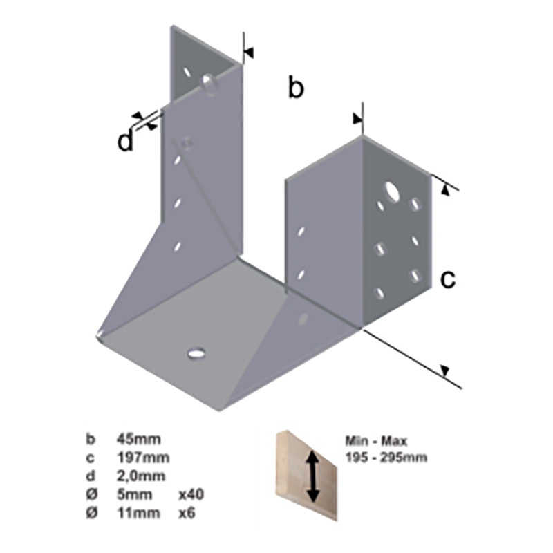 Izgatavotas no 1,5 vai 2,0 mm karsti cinkotas tērauda loksnes. Var pasūtīt arī no skābesizturīga nerūsējošā tērauda A4. Siju kurpēm ir 5 mm caurumi naglām/skrūvēm, kā arī 9 mm vai 11 mm caurumi bultskrūvēm. Siju kurpes atlokā, kas paliek zem sijas, ir arī 7 mm caurumi.
