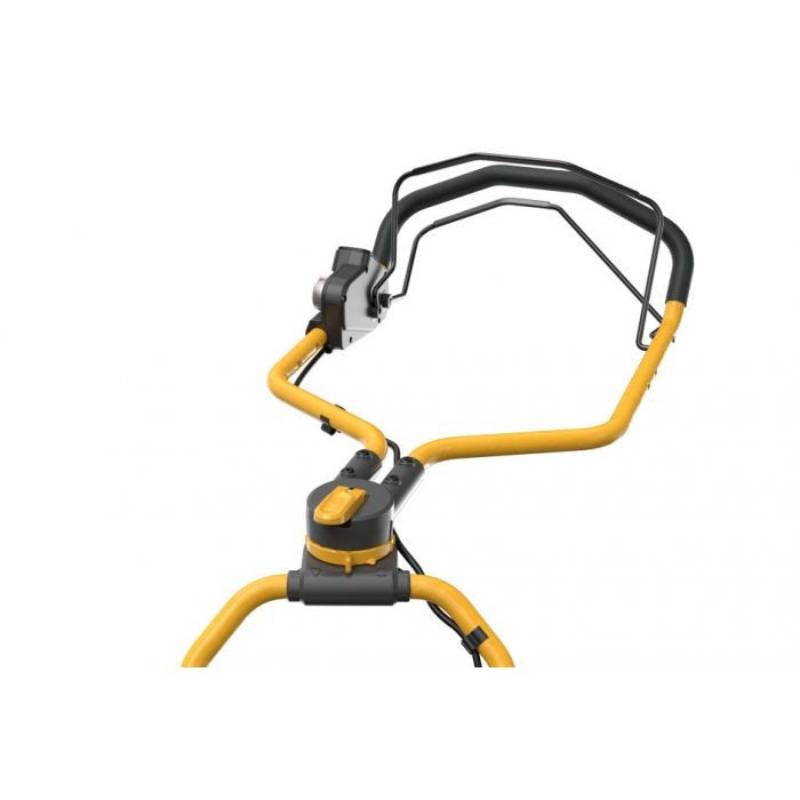 Elastīgums un komforts ir arī svarīgas šī zāles pļāvēja īpašības. Jūs varēsiet viegli noregulēt mīkstā roktura stūri tādā augstumā un pozīcijā, kās būs visērtāk jums - garākam vai īsākam cilvēkam, roku augstums, utml. Izturīgais plastmasas priekšējais buferis aizsargā ierīci no nejaušiem triecieniem. Kad darbs būs pabeigts, vienkārši nolokiet stūri uz priekšu un kompaktā veidā novietojiet iekārtu garāžā.