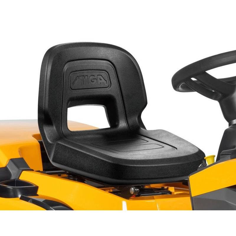 Papildus vienkāršai pļaušanai un zāles savākšanai varat izvēlēties arī kādu no divām citām iespējām - izsviest nopļauto zālienu pa aizmugures atveri vai arī mulčēt. Nopļauto zāli iespējams uzkrāt 240 l lielajā savācējgrozā. Traktora vadīšanas laikā nav nepieciešams pārslēgt pārnesumu, lai pielāgotu braukšanas ātrumu - tā vietā jūs varēsiet paātrināt un samazināt ātrumu bezgalīgi, izmantojot kājas pedāli. Tas savukārt uzlabo vadāmību, kas ļauj droši un precīzi apbraukt kokus, krūmus un citus šķēršļus, taču tajā pašā laikā neatstājot liekus zāles kumšķus. Gadījumā, ja sāk krēslot, droši turpiniet darbu - ieslēdziet jaudīgos, taču energoefektīvos lukturus. Traktoram ir ērts vadītāja krēsls un mīksts stūres rokturis.