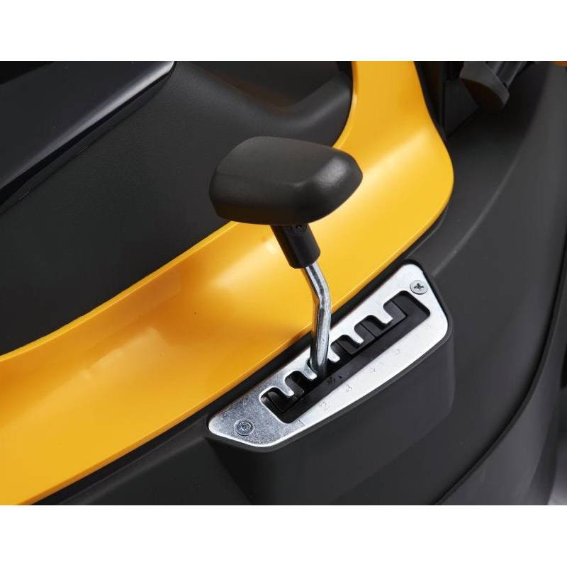 Darba platums šai iekārtai ir 38 cm, aprīkots ar sešiem pļaušanas augstuma līmeņiem diapazonā no 25 līdz 75 mm. Visu savākto nopļauto zāli pļāvējs novirza 40 l ietilpības savācējgrozā. Pēc tam, kad darbs ir pabeigts, pļāvēja stūri var pilnībā nolocīt, tā ievērojami ietaupot vietu telpā, kur iekārtu uzglabāsiet.