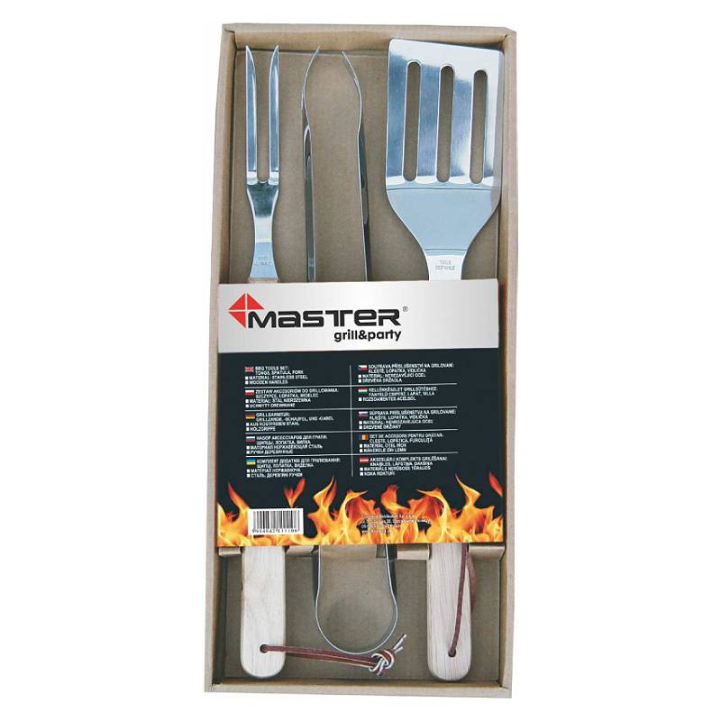 Lai grilēšanas darbi allaž noritētu bez jebkādām raizēm un aizķeršanos, vienmēr jābūt pa rokai labākajiem un uzticamākajiem instrumentiem. MASTERGRILL MG110 ir grila instrumentu komplekts. Piederumu komplektā ir gan knaibles, kas ar robainajiem galiem atvieglo ēdiena satveršanu un novērš tā izslīdēšanu, gan lāpstiņa un lielā dakša. Visiem piederumiem, kuri ir 38 cm garumā, izgatavoti no nerūsējošā tērauda, rokturi ir ar koka apdari.