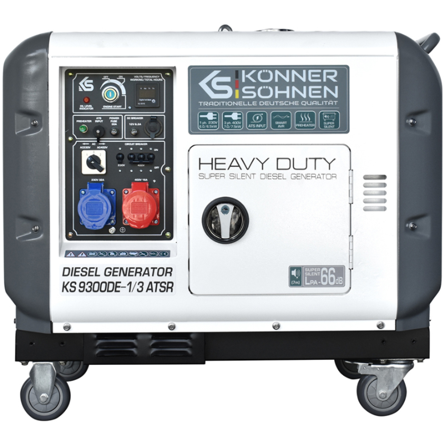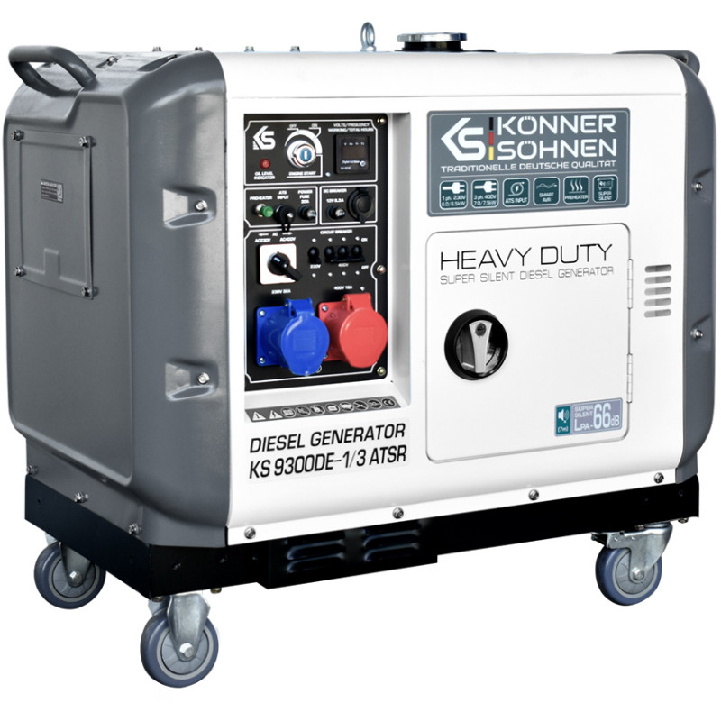 KONNER & SOHNEN dīzeļģenerators KS 9300DE-1/3 ATSR Super S ir īpaši piemērots lietošanai vietās, kur mēdz būt galvenās elektroapgādes pārtraukumi. Ģeneratoram ir iespēja pieslēgt ārējo ATS (automātisko pārslēgšanas slēdzi) sistēmu, kas ļauj automātiski iedarbināt ģeneratoru, kad tiek atslēgts galvenais barošanas avots. Īpaši noderīgs būs ne tikai privātām vajadzībām, bet arī lauksaimniecībā - fermās, siltumnīcās un noliktavas, tāpat arīdzan administratīvās, izglītības un medicīnas iestādes. Svarīgi, lai ēku elektroapgādes sistēmām būtu rezerves barošanas avots, kas elektrotīkla atslēguma gadījumā varētu nodrošināt elektrību apgaismojumam, ventilācijai, dzīvībai svarīgām iekārtām, arī serveriem, kas glabā svarīgu informāciju.