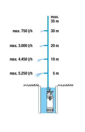 Ļoti jaudīgs iegremdējamais sūknis kuram ir trīspakāpju hidrauliskā sistēma, lai viegli sūknētu ūdeni no akām vai tvertnēm.