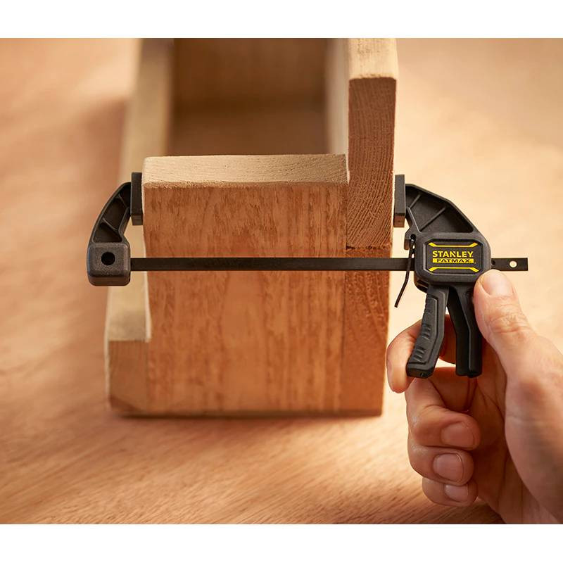 STANLEY FATMAX FMHT0-83231 ir neliels un kompakts, taču lielisks instruments dažādu specifisku darba veikšanai, piemēram, ja jāsalīmē vairāki materiāli vienkopus vienā izmērā vai citādās formās, tad viegli tos salikt kopā un savilkt ar spīlēm. Maksimālais saspiešanas spēks ir 20 kg. Spīlēm ir ergonomisks atbrīvošanas slēdzis ātrai atlaišanai, to var izdarīt arī ar vienu roku.
