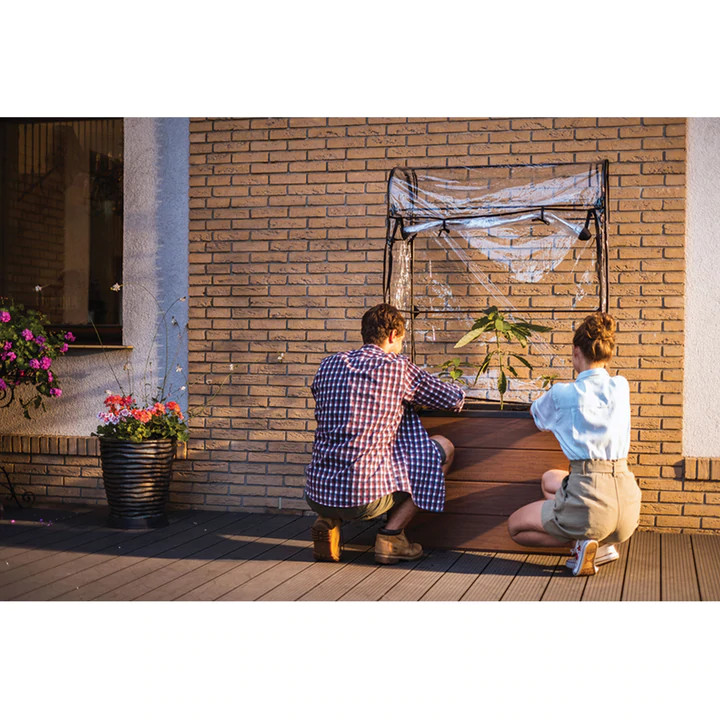 Siltumnīca terasei Maple padara dārzeņu un ziedu audzēšanu patīkamu un vienkāršu.