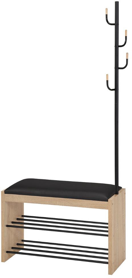 Zem sēdekļa ir divi plaukti apavu uzglabāšanai.