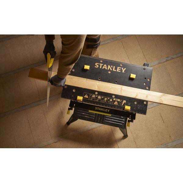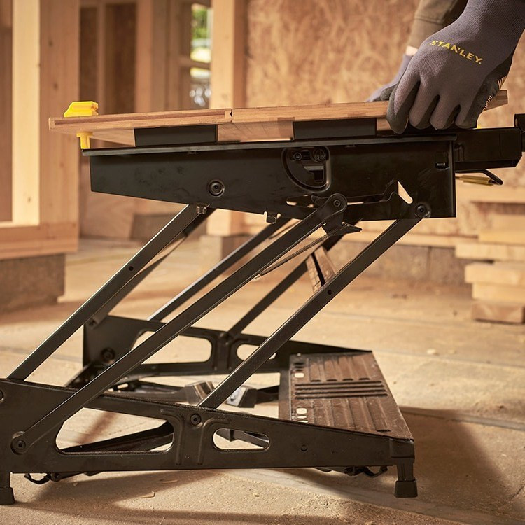 Regulējama darba virsma ļauj šo darbagaldu izmantot kā skrūvspīles.
