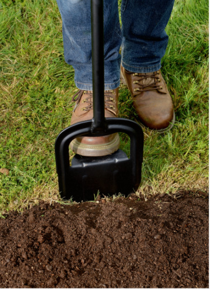 Lāpsta ar centrētu protektoru glītām zāliena apmalēm.