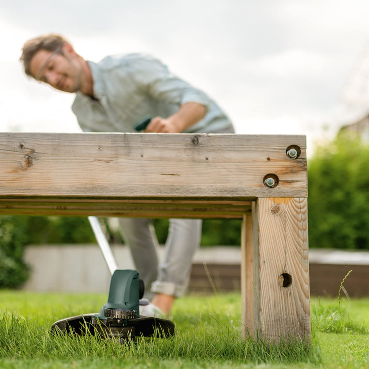 Inteliģentā uzbūve ļauj ērti un dabiskā veidā veikt dārza darbus Ergonomiskas konstrukcijas V veida rokturis ļauj ieturēt komfortablu ķermeņa stāvokli Sistēma IntelliFEED nodrošina automātisku griezējauklas padevi, ļaujot strādāt bez pārtraukumiem Universālas galvas noliece ir regulējama bez roku palīdzības, ļaujot pielāgot instrumentu slīpumu un malu apstrādei Zāles un nezāļu pļaušana, zāliena apcirpšana, kā arī apmalošana Pietiekami jaudīgs, lai apcirptu līdz pat astoņu tenisa kortu zālienu malas ar vienu uzlādi Jūsu rokās atkal ir ielikts dārzkopības prieks UniversalGrassCut 18V-26 zāles pļaušanu padara vieglu. Ergonomiski konstruēts, lai rīkošanās ar to būtu ērta, pielāgojams katram individuālajam lietotājam un ietver viegli, ar vienu klikšķi iestatāmas funkcijas, kas atvieglo dārzkopību. Izstrādāts bezpiepūles mauriņa kopšanai, UniversalGrassCut 18V-26 piedāvā ergonomisku V veida rokturi ar teleskopisku augstuma regulēšanas iespēju, lai ar to varētu ērti rīkoties, saglabājot dabisku pozu. Funkcija IntelliFEED automātiski padod uztīto griezējauklu, likvidējot nepieciešamību trimeri apturēt, liekties vai atsist pret zemi. Daudzveidīgā galviņa rotē, reaģējot uz kājas pedāļa pogu un roktura pagriešanu, viegli pārslēdzoties no apcirpšanas uz apmalošanu. Tā augu aizsardzības funkcija saudzīgi aizsedz puķes, strādājot ap puķu dobēm. Ar pilnībā uzlādētu akumulatoru trimeris spēj apcirpt astoņu tenisa kortu apmales vienā piegājienā. Instruments pieder POWER FOR ALL ALLIANCE grupai. Viens akumulators var darbināt plašu instrumentu klāstu, kas pārstāv dažādus zīmolus.