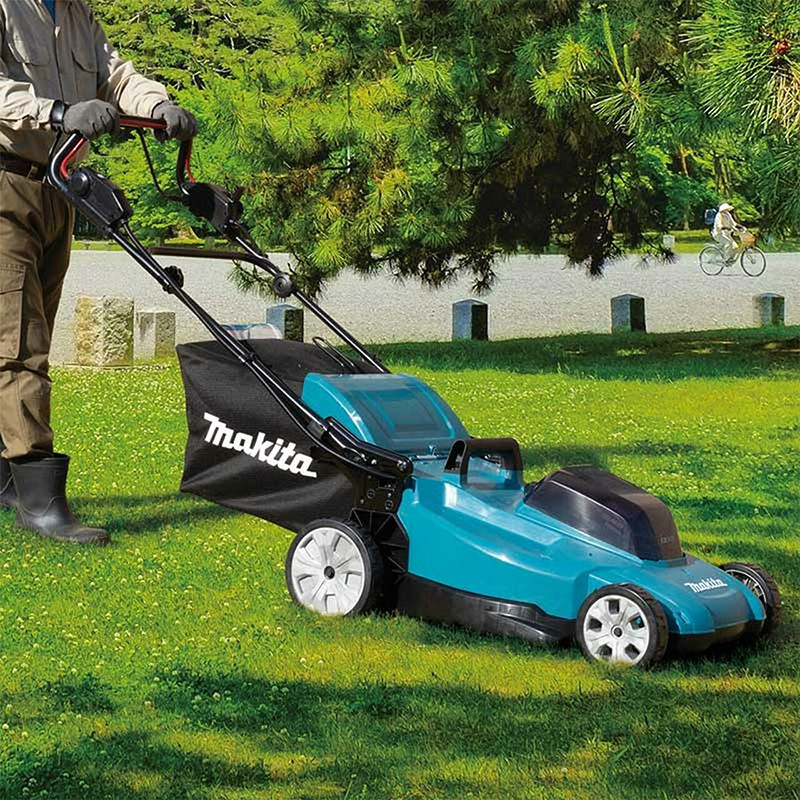 Makita jaunā pļaujmašīna DLM538 ir piemērota dārziem un mājas lietošanai. Ar diviem 18V LXT® akumulatoriem Jūs varat nopļaut līdz 800 m² lielu laukumu. Astoņas dažādas pļaušanas augstuma pozīcijas, lai iegūtu nepieciešamo zāliena augstumu.