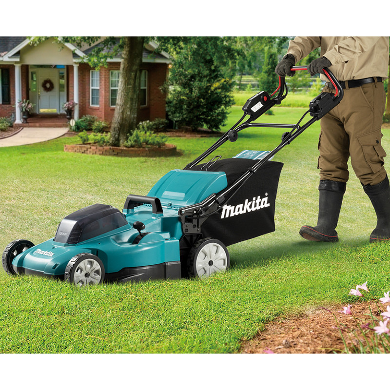 Makita jaunā pļaujmašīna DLM539 ir piemērots dārziem un mājas lietošanai. Ar diviem 18V LXT® akumulatoriem Jūs varat nopļaut līdz 800 m² lielas platības. Astoņas dažādas pļaušanas augstuma pozīcijas, lai iegūtu pareizo zāliena augstumu.