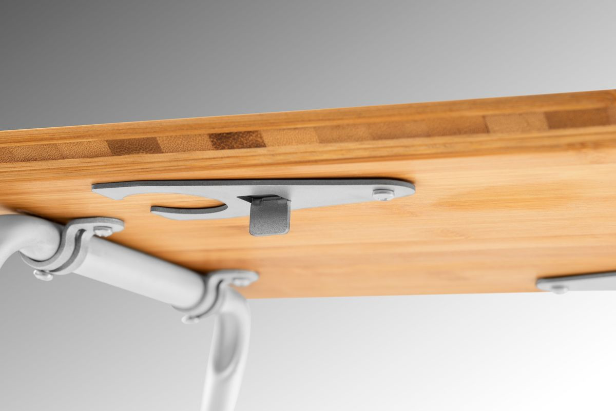 Izturīgā bambusa galda virsma darbojas arī kā griešanas dēlis.
