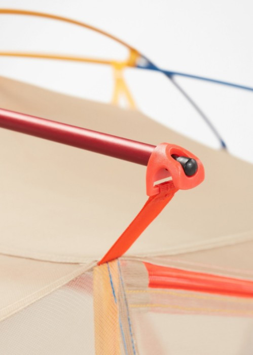 Krāsu kodēti telts stabi atvieglo montāžu.