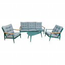 Dārza mēbeļu komplekta daļu galvenā konstrukcija un galda virsma ir izgatavota no alumīnija un apdarināta ar zaļu pulverkrāsojumu.