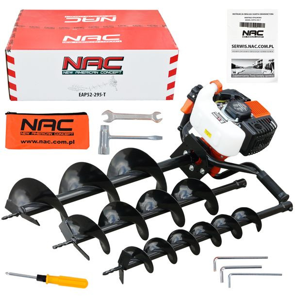 NAC EAP52-295-T zemes urbis, komplektā trīs urbji ar diametru 100, 150 un 200 mm.