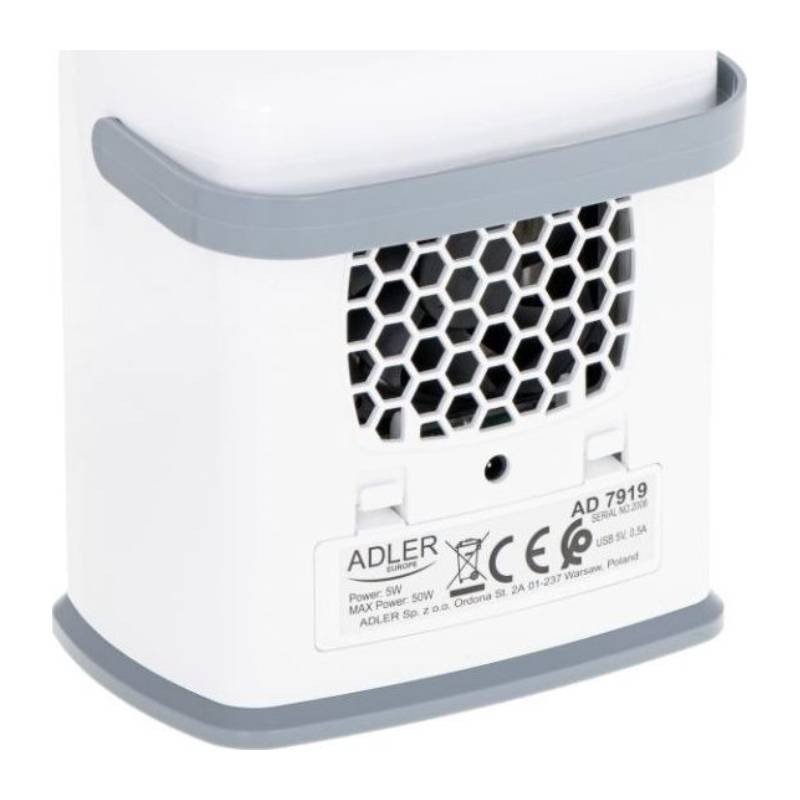 ADLER AD 7919 KLIMATOR ir stilīgs, ļoti kompakts, ērti lietojams un ņiprs gaisa kondicionieris ar trim funkcijām - tas atdzesē, attīra un mitrina gaisu. Šī kondicionētāja priekšrocība ir tā mazais izmērs un elegantā apdare. Darbojas ar 50 W jaudu, nodrošinot līdz 60 m3/h aktīvu gaisa plūsmu. Varat to novietot uz plaukta birojā, uz galda viesistabā vai kumodes guļamistabā. 1,2 m garais USB kabelis ļaus pieslēgt ierīci jebkurā telpā. Divi ventilatora ātrumi un gaisa plūsmas kontrole ļauj izvēlēties ideālos iestatījumus pašreizējiem apstākļiem konkrētajā telpā un gaisa kondicionētāja atrašanās vietai. Ūdens tvertne ar ietilpību 500 ml un ūdens patēriņš no 50 ml / stundā ļauj ilgstoši darboties ierīcei. Pacelšanas rokturis un iztukšošanas aizbāznis ērtai ūdens iztukšošanai ir ērtības, kas padara gaisa kondicionētāja darbību ļoti vienkāršu.