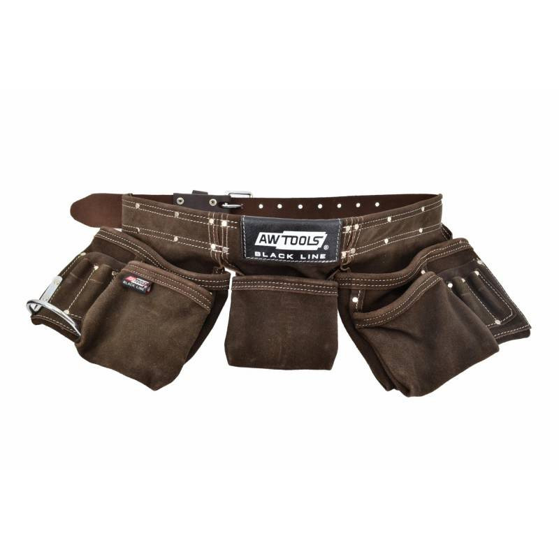 AWTOOLS instrumentu siksna ir izgatavota no augstākās kvalitātes īstas zamšādas. Sprieguma vietās stingras kniedes nodrošina izturību pret plīsumiem, savukārt divrindu šuves gādā par papildu stiprību un izturību. Ar 11 dažāda izmēra kabatām instrumentu un piederumu glabāšanai, tostarp viena vidējā kabata mērlentei un vēl cita - metāla āmura ievietošanai. Līdzi nāk izturīga, regulējama josta 50 cm un metāla sprādze. Lieliski piemērota būvniecības, renovācijas vai uzstādīšanas darbos, jebkuram instrumentam vienmēr esot pa rokai.