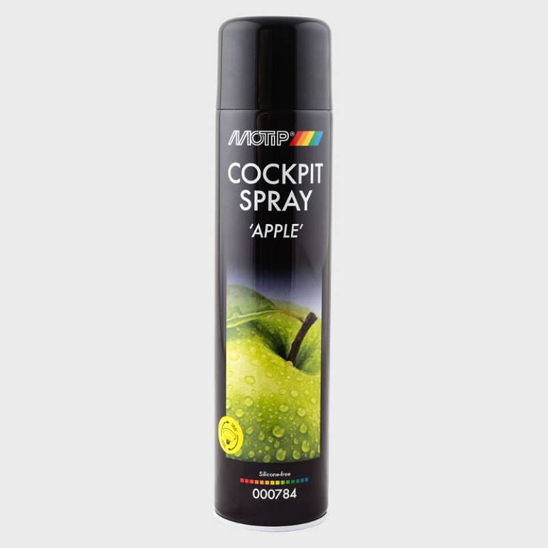 MOTIP automašīnas salona tīrīšanas līdzeklis COCKPIT SPRAY 600 ml flakonā. Auto paneļu un citu plastmasas un gumijas detaļu tīrīšanai un aizsardzībai. Ar ābolu aromātu. Spēcīga iedarbība. Noturīgs spīdums. Samazina netīrumu pielipšanu. Bez silikona. Antistatisks.