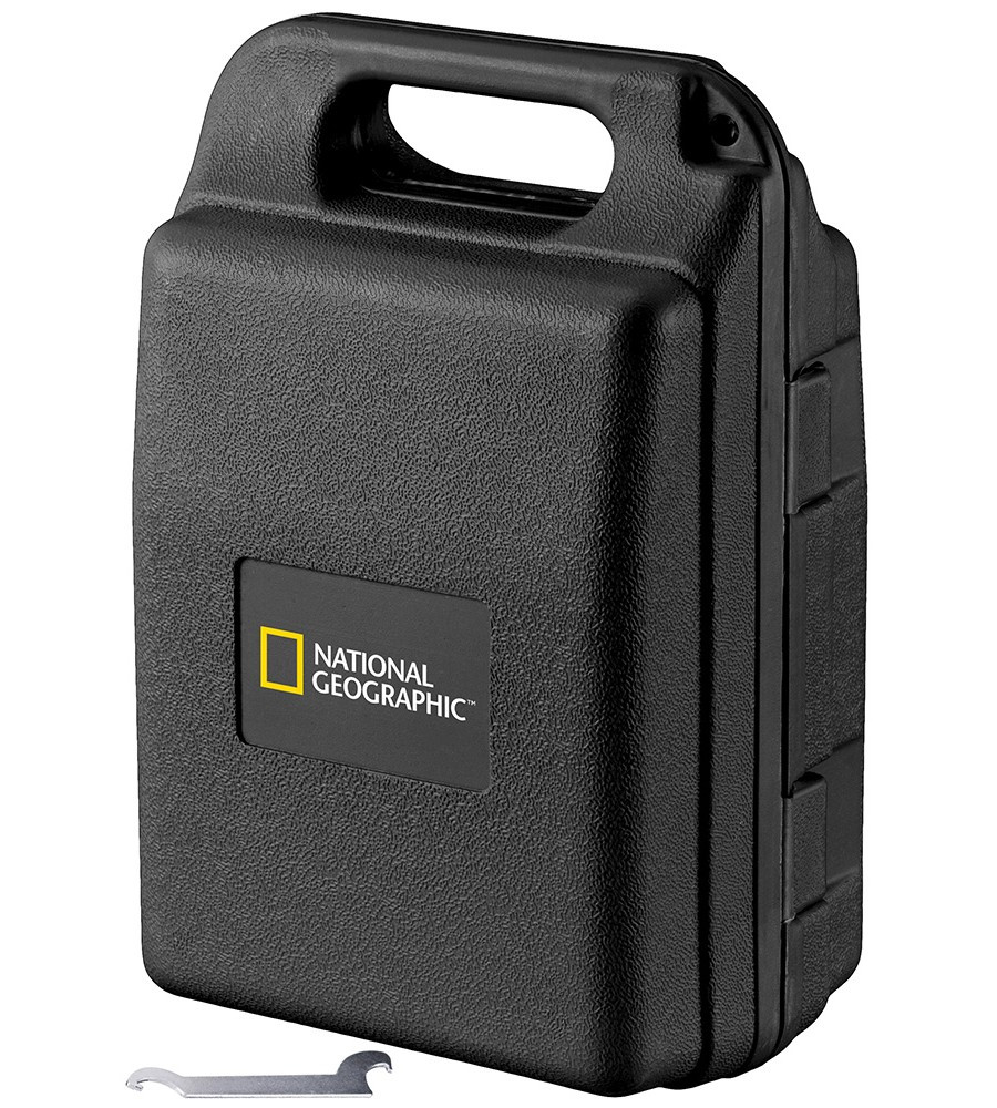 National Geographic gaismas mikroskops ar 20x palielinājumu ir kompakts un stabils mikroskops iesācējiem! Ar grozāmo mikroskopa galviņu, jūs varat noregulēt mikroskopu tā, lai vislabāk varētu apskatīt pētāmo objektu. Darba attālums ir ļoti viegli regulējams, jūs varat novērot objektus un paraugus līdz pat 8 cm izmēram. Komplektācijā ir iekļauta divu krāsu (balta priekšpuse un melna aizmugure) plāksne, lai varētu pētīt gan gaišus, gan tumšus objektus.