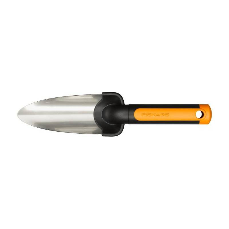 FISKARS PREMIUM rokas dārza lāpstiņai ir FiberComp rokturis un nerūsējošā tērauda galva. Lielākam komfortam rokturis ir pārklāts ar neslīdošu SoftGrip materiālu. Lāpstiņas garums ir 280 mm, roktura galā ir caurums, kurā ievīt striķi, lai instrumentu var'tu pakārt saimniecības ēkā vai piekārt pie bikšu atloka.