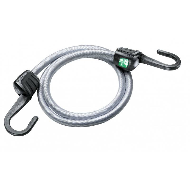 MASTERLOCK gumijas trosīte bagāžas un kravas nostiprināšanai, ar papildu pretestību. Garums - 80 cm. Sastāv no siksnas ar plakaniem tērauda āķiem un L veida stūri. Āķi ir trīs reizes stiprāki nekā tradicionālie gumijas auklas āķi. Apgrieztā āķa dizains nodrošina lielāku piestiprināšanas brīvību. Augstākās kvalitātes gumijas aukla ir ļoti izturīga un elastīga.