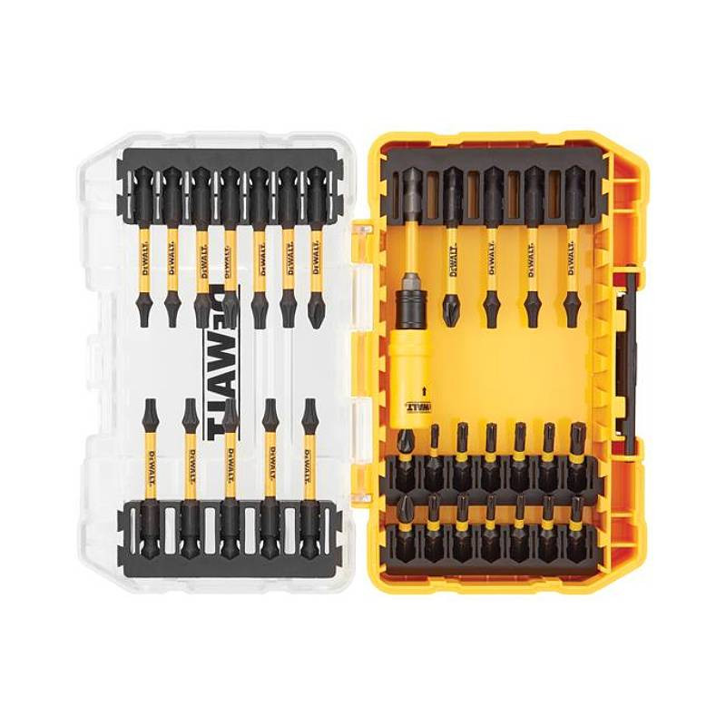 DEWALT skrūvgriežu uzgaļu komplekts FLEXTORQ ar 31 sastāvdaļu. Vienkārša uzgaļa noņemšana un saglabāšana lietotāja ērtībām. Uzgaļi nofiksējas vietā, lai novērstu to izkrišanu, kad tie netiek izmantoti. Optimizēta uzgaļa ģeometrija, lai pilnībā iekļautos stiprinājumā un samazinātu izciļņu. Komplektā arī magnētiskais uzgaļu turētājs ar vērpes zonu un izturīgs futrālis.