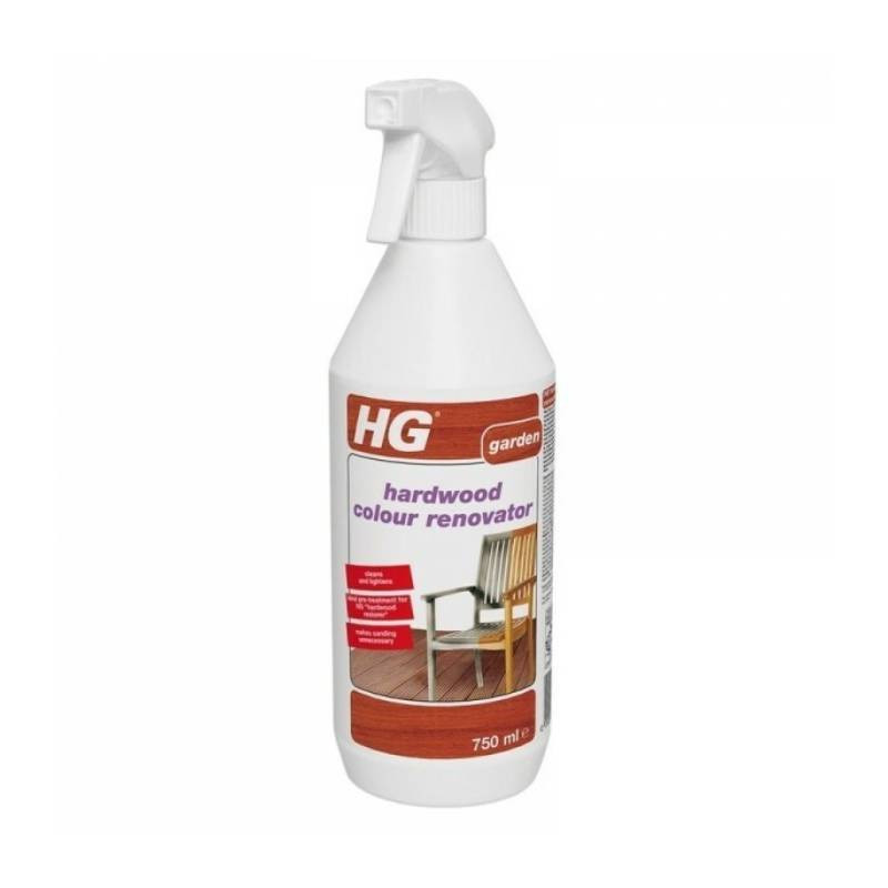 HG masīvkoka izstrādājumu krāsas atjaunotājs 750 ml pudelē. No tīkkoka vai cieta koka izgatavotu dārza mēbeļu siltais un spožais izskats bieži tiek izbalē līdz blāvai un pelēkai tonalitātei pastāvīgas laikapstākļu iedarbības dēļ. Šis līdzeklis ne tikai attīra un atdzīvina blāvās un pelēkās masīvkoksnes dārza mēbeles, bet arī aizsargā koksni un atjauno tās spīdīgo izskatu. Piemērots arī citu veidu koksnes, piemēram, meranti, sarkankoka un priedes, izmantošanai.