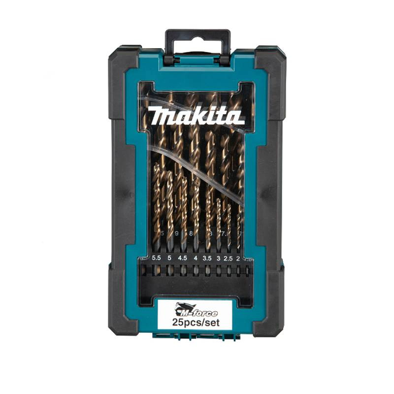 MAKITA urbju komplekts metāla materiāliem - čugunam, alumīnijam, varam, svinam, tēraudam, misiņam, arī plastmasai. Komplektā kopumā 25 dažāda izmēra uzgaļi.