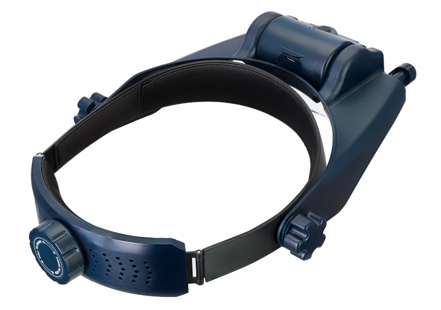 Palielināmās brilles ir piestiprinātas pie galvas ar regulējama galvas saiti.