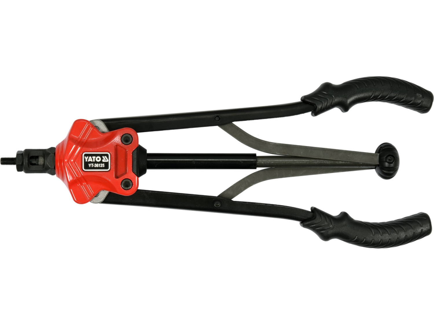 YATO YT-36125 M3-M12 ir divu roku kniedētājs, kas paredzēts kniedējo uzgriežņu izmantošanai. Šis kniedētājs ir ideāli piemērots materiālu savienošanai, izmantojot kniedējo uzgriežņus ar iekšējo vītni. Tas ļauj pievienot papildus detaļas ar lapu metāla skrūvēm vai uzgriežņiem. Apskates galvas izmēri: M3, M4, M5, M6, M8, M10, M12, izgatavoti no izturīga CRMO hroma-molibdēna instrumentu tērauda. Rokturi ir pārklāti ar neslīdošu gumijas slāni, bet korpuss izgatavots no alumīnija. Kniedētājam ir ātrā atbrīvošanas sistēma kniedējo uzgriežņu demontāžai pēc darba pabeigšanas.