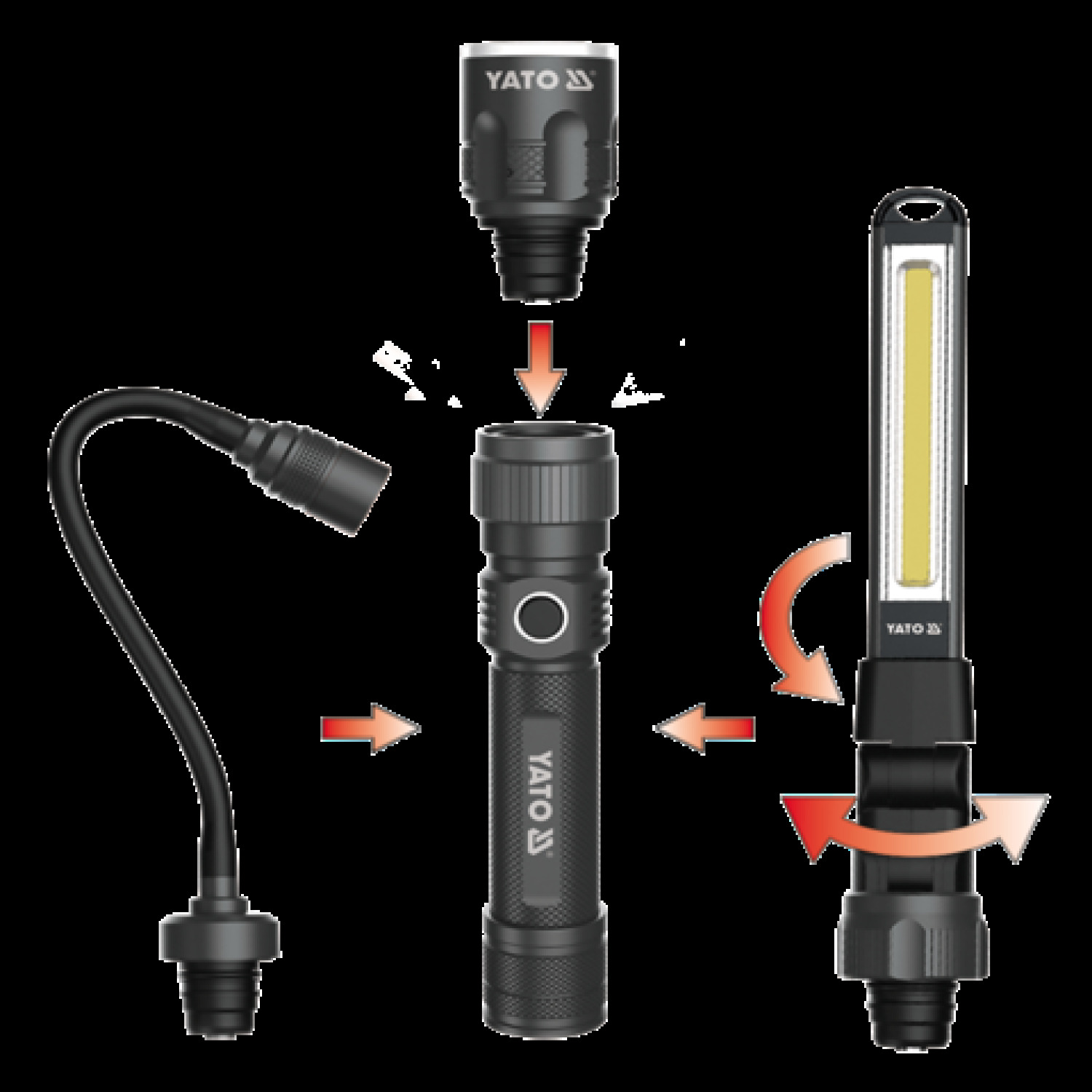 Daudzfunkcionāls darba lukturu komplekts ar divām lampas uzgaļiem. Ātrās atvienošanas sistēma nodrošina vieglu un ātru pievienošanu vai atvienošanu no lampas korpusa. Ietilpīgais 3.7V 2200mAh litija jonu akumulators nodrošina līdz 1.5 līdz 8.5 stundām darbības laika. Komplekts nāk ērti iepakots izturīgā koferī, kas atvieglo uzglabāšanu un transportēšanu, kā arī izcils kā dāvana.