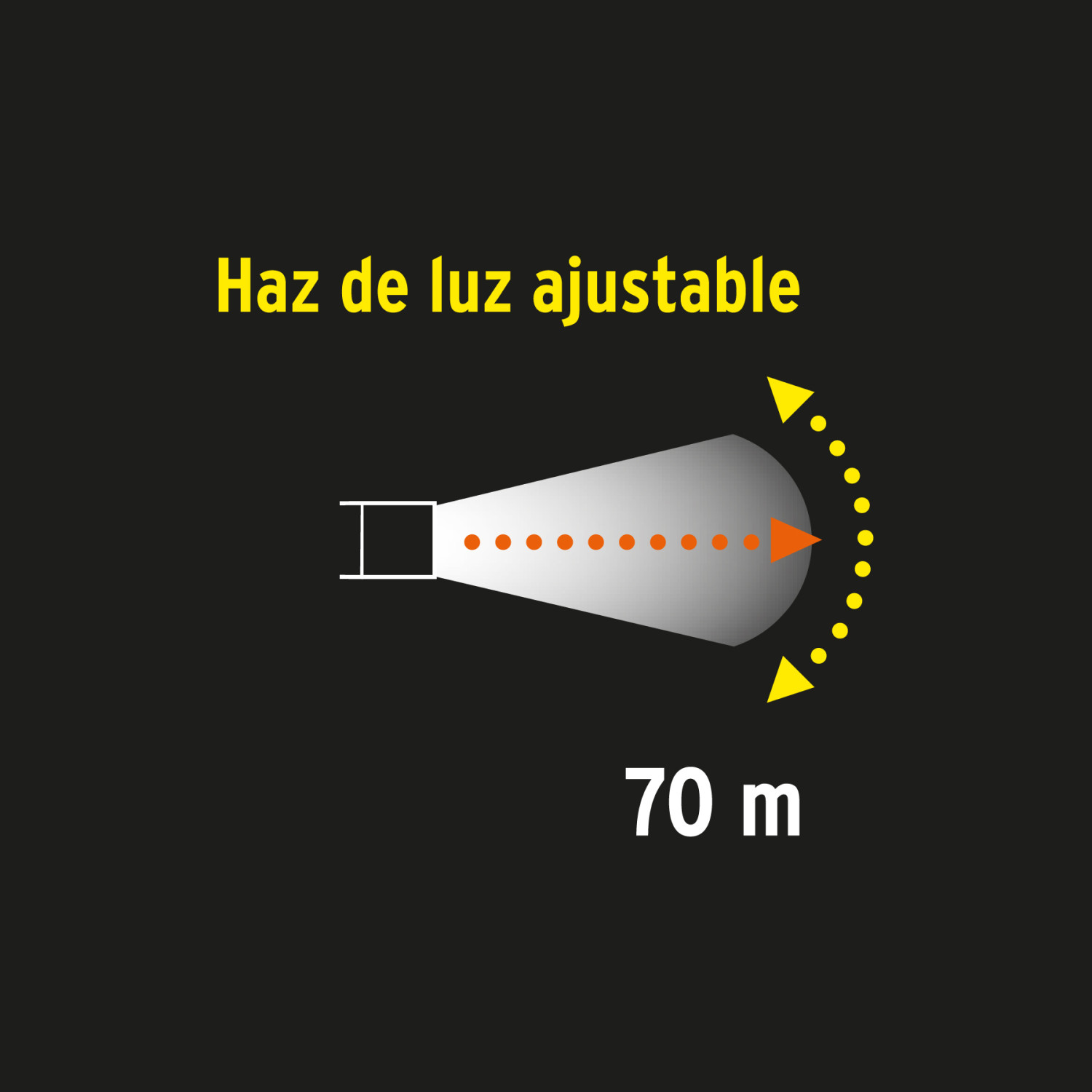 Kabatas lukturīša gaismas stara attālums ir 70m.