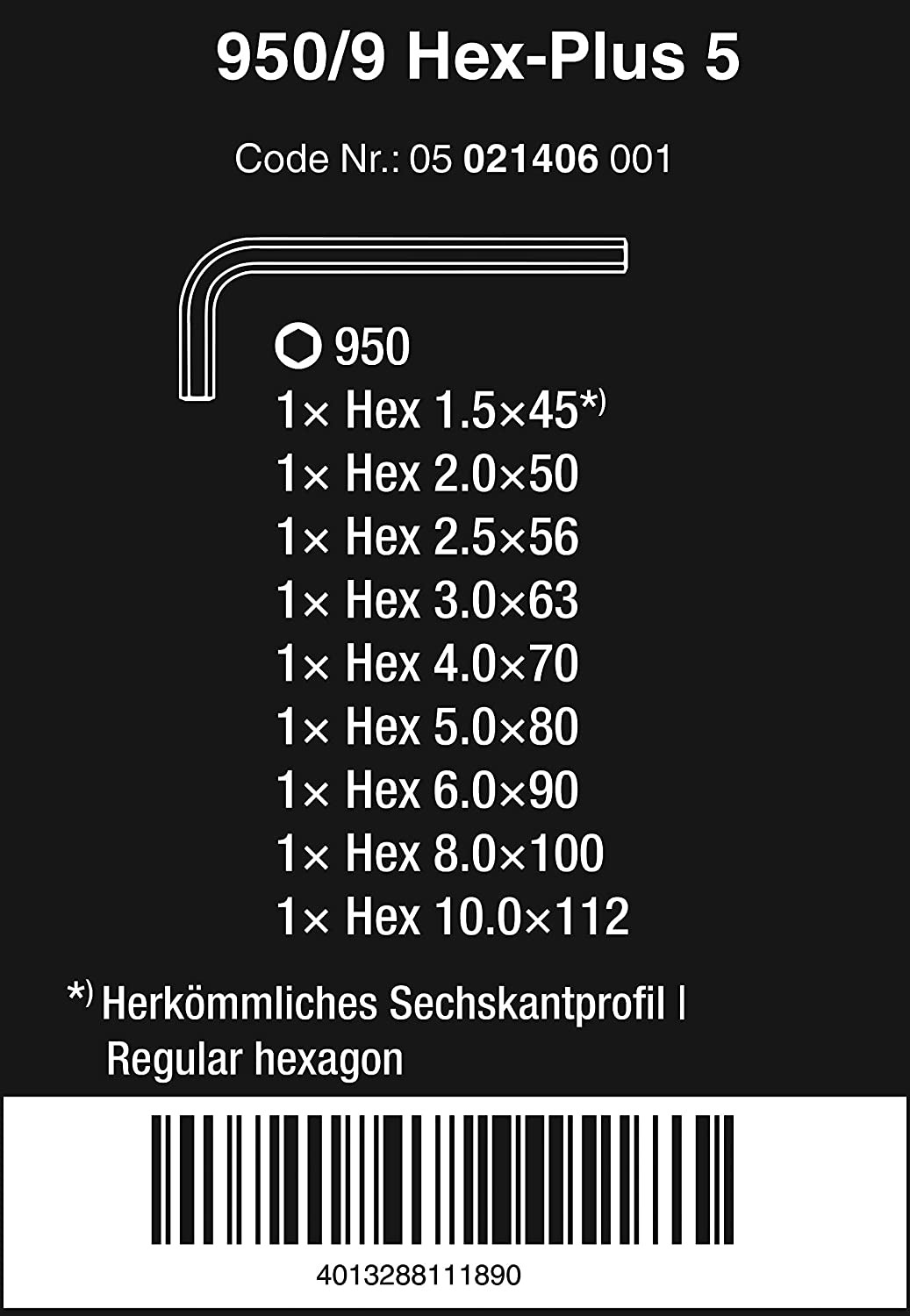 950/9 Hex-Plus 5 L-key set ir augstākās kvalitātes L veida 5 atslēgu komplekts sešstūra ligzdas skrūvēm.