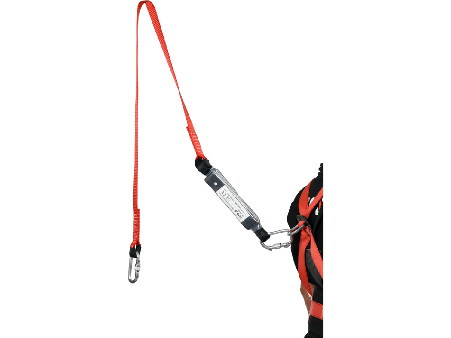 Drošības amortizators YT-74227 ar siksnu un divām karabīnēm ir kritiena apturēšanas sistēmas elements, kas savieno drošības jostu ar stiprinājuma punktu. Šis drošības amortizators ir izgatavots no pareizi šūtas poliestera siksnas. Pārtrauktā kritiena gadījumā īpaši izstrādātās vīles pakāpeniski plīst, samazinot kritiena ātrumu.