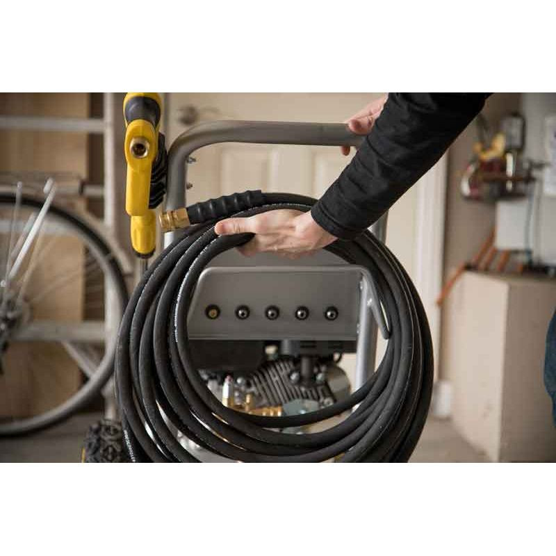 Paplašiniet savu sasniedzamību, izmantojot komplektācijā iekļauto 15,2 m augstspiediena, ātri savienojamo šļūteni un bez problēmām izmantojiet tīrīšanas mazgāšanas līdzekļus ar 1,2 m mazgāšanas līdzekļa šļūteni.