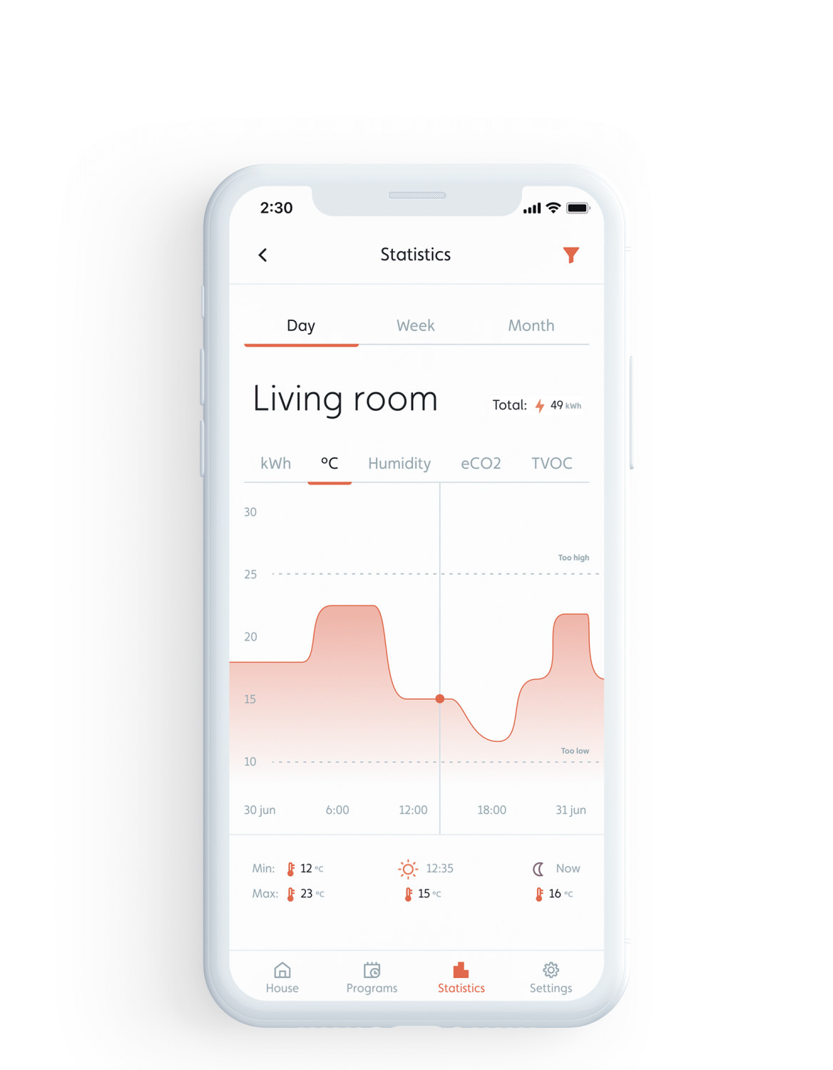 • Paneļu sildītājam ir uzlabots algoritms, kas uzzina, cik ātri/lēni temperatūra telpā paaugstinās/samazinās.