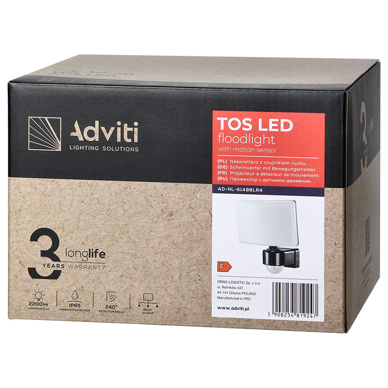 Dārza prožektors paredzēts uzstādīšanai ārpus telpām, kā stāvvietas un dārza apgaismojumu, vai ēku fasāžu, reklāmu uc apgaismošanai. Var izmantot arī iekštelpās, piemēram, garāžās, hallēs. Tā vienkāršā forma un platais abažūrs bez rāmja ļauj prožektoram labi izskatīties uz dažāda stila ēkām. Gaismas avots SMD LED diožu veidā garantē augstu energoefektivitāti un ilgu ierīces kalpošanas laiku. Piedāvātā prožektora nominālā jauda ir 30W, un tas izstaro gaismu ar gaismas plūsmu 2200 lm. Tas spīd ar dabisku baltu krāsu, ar temperatūru 4000K. Ierīcei ir iebūvēts PIR sensors, kas ieslēdz gaismu, kad tiek uztverta kustība un ļauj iestatīt apgaismojuma laiku atbilstoši individuālajām vēlmēm (no 10 +/- sekundēm līdz 5 +/- minūtēm). Sensors uztver kustību gan dienas, gan nakts laikā. Maksimālais noteikšanas diapazons ir 10 metri. Kustīgais korpuss ļauj pielāgot apgaismojuma leņķi atbilstoši telpas apstākļiem (horizontāli 180°, vertikāli 125°). Augsta iekļūšanas aizsardzības pakāpe IP65 aizsargā prožektoru pret ūdens, putekļu un netīrumu iekļūšanu, tāpēc šis produkts izturēs pat visgrūtākos laika apstākļus (-20 ~ + 40 °C). Pieejamās krāsas: balta vai melna.