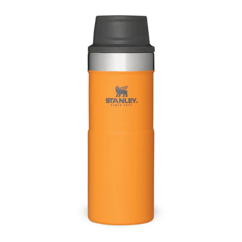 Ilgtspējīgā un drošā ceļojumu krūze Stanley Trigger Action lieliski iederas visos transportlīdzekļu dzērienu turētājos.