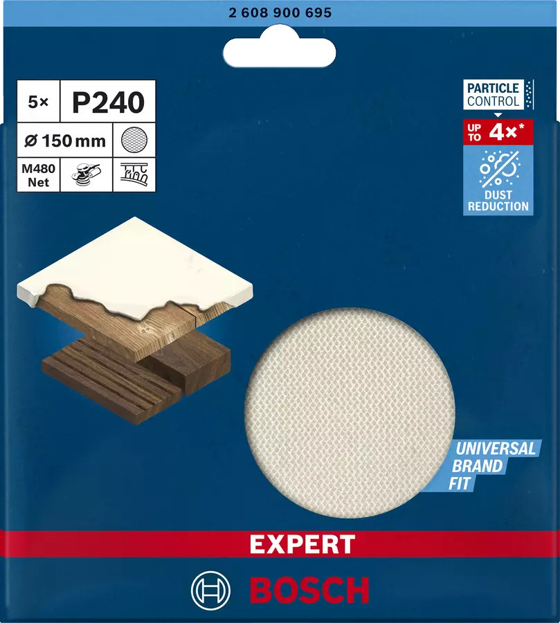 Bosch EXPERT M480 abrazīvais siets izmanto Particle Control tehnoloģiju, lai samazinātu putekļu līmeni līdz minimumam.