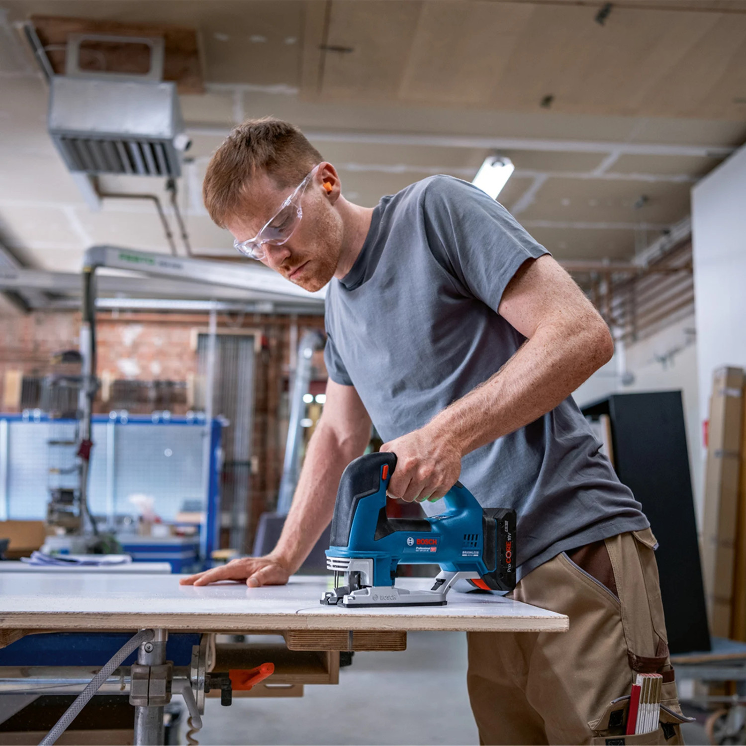Ideāla meistarība vissarežģītākajai griešanai jebkurā pozīcijā - ar loka rokturi GST 18V-155 BC Professional (ar loka rokturi) ir aprīkots ar bezsuku dzinēju un labi balansētu instrumenta konstrukciju. Augšējā roktura satveršanas virsma un tā maināmais ātruma slēdzis nodrošina perfektu instrumenta kontroli. Zāģa asmens vadīkla aizsargā asmeni no saliekšanās pat mazos izliekumos un sniedz atbalstu darbam ar ideālu precizitāti. Instruments ir saderīgs ar ārēju papildierīci putekļu uzsūkšanai. Tā lielā zāģa asmens izvirzīšanas svira un nokrišanas kontroles īpašība nodrošina lielāku lietotāja veselības aizsardzību un drošību. Tas ir ideāli piemērots izliekumu griezumiem un šķērsgriezumiem blīvā koksnē, skaidu plātnē un koka kompozītmateriālos, kā arī biezākos un cietākos materiālos. Tas ir saderīgs ar vadotnes sliedēm ar adaptera palīdzību un ar visiem Bosch Professional 18V akumulatoriem un uzlādes ierīcēm (Professional 18V System). Tāpat tas ir saderīgs ar AMPShare, daudzzīmolu aliances akumulatoriem. Instruments tiek piegādāts ar robustu, lieta alumīnija balstplāksni ar diviem nostiprināšanas punktiem lielākai stabilitātei un drošībai. Tā savienojamības modulis ļauj veikt individuālu ātruma un apgaismojuma iestatīšanu un nodrošina svarīgu instrumenta informāciju. Augšējā roktura satveršanas virsma un maināms ātruma slēdzis nodrošina perfektu instrumenta kontroli Ideālai precizitātei: zāģa asmens vadīkla aizsargā asmeni no saliekšanās pat mazos izliekumos. Liela zāģa asmens izvirzīšanas svira, nokrišanas kontroles īpašība un ārēja papildierīce putekļu uzsūkšanai nodrošina lielāku lietotāja veselības aizsardzību un drošību Izturīga, lieta alumīnija balstplāksne ar diviem nostiprināšanas punktiem. Savienojamības modulis individuāla ātruma un apgaismojuma iestatīšanai un instrumenta statusa kontrolei.