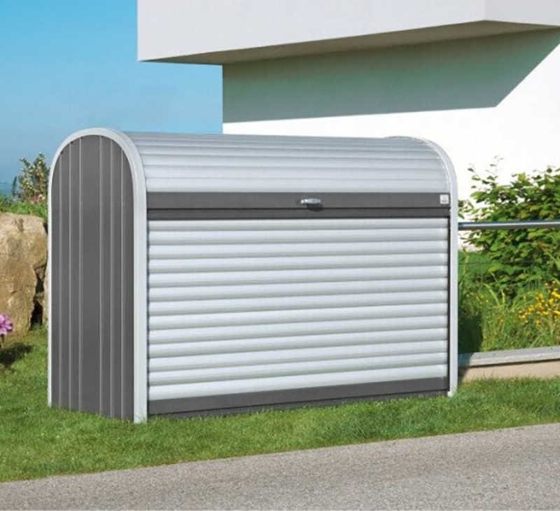 StoreMax ir drošs un pievilcīgs risinājums atkritumu tvertņu, atkritumu šķirošanas sistēmu, zāles pļāvēju, dārza instrumentu, grila, sporta aprīkojuma, dārza mēbeļu, ēdināšanas piederumu, velosipēdu un daudz ko citu priekšmetu uzglabāšanai! Ideāli piemērots izmantošanai kā velosipēdu nojume.