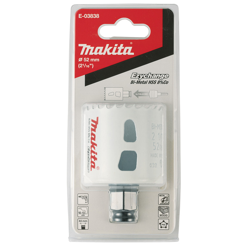 Ar Ezychange sistēmu varat viegli un ātri pievienot/atvienot centrālo urbi vai caurumzāģi, vienkārši iespiežot to adapterī, lai pievienotu vai vienkāŗši izņemt no adaptera, lai atvienotu. Efektīva putekļu/gružu izvešana pa trim caurumiem caurumzāģa sānos.
