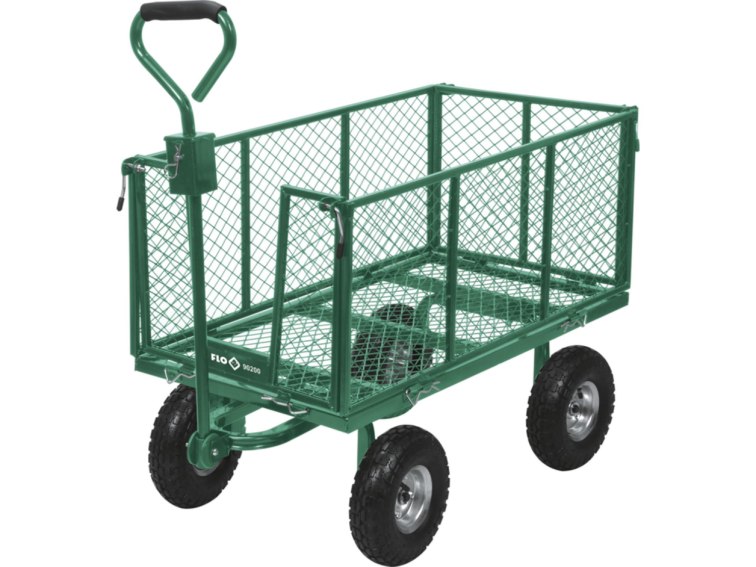 Dārza ratiņi FLO 90200 ir universāli ratiņi mājas darbiem, kas ideāli piemēroti koku, lapu, pļautās zāles, zemes maisu, mēslojuma un citu materiālu transportēšanai.