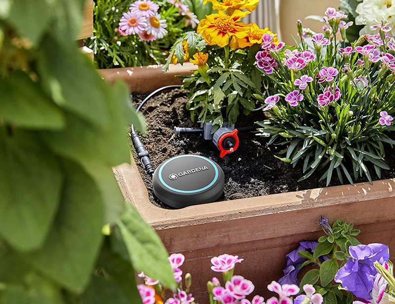 augsnes mitruma sensors GARDENA augsnes mitruma sensors jaunajā dizainā ir īpaši plakans un izvirzīts tikai 20 milimetrus no zemes. Lai gan tas ir pieslēgts zālienam, GARDENA zāles pļāvējs vai robotizētais zāles pļāvējs tam var viegli pārbraukt. Pateicoties tā kompaktajam izmēram, to var izmantot gandrīz jebkur dārzeņu dobēs vai stādītājos un mēra tieši tur, kur tas ir svarīgi, proti, pie saknēm. GARDENA augsnes mitruma sensors ir savienots ar vienu no GARDENA apūdeņošanas vadības ierīcēm, izmantojot kabeli, un turpmāk augsnes mitrums tiek ņemts vērā automātiskās laistīšanas laikā. Ja zemē joprojām ir pietiekami daudz ūdens, apūdeņošana tiek vienkārši apturēta. Tas ir īpaši efektīvi un ekonomiski. Izmērītā augsnes mitruma rādīšanu un iestatījumu, no kura mitruma saturu augsnē nedrīkst laistīt, var viegli izdarīt uz attiecīgā apūdeņošanas regulatora, kuram pievienots jaunais augsnes mitruma sensors. Sensors ir savietojams ar lielāko daļu GARDENA laistīšanas vadības ierīču. Tips: sensors Krāsa: melna/tirkīza EAN: 4078500045575 Ražotāja numurs: 01867-20 SmartHome: savietojams ar | Mājīgs Paredzētais lietojums: augsnes mitruma mērīšana, vērtību pārraide pa kabeli Darbības režīms: akumulatora darbība Lietošanas joma: ārā Aksesuāri: pieejami | 5 metru kabelis (pagarināms) Piederumi: nepieciešami | 2x AA 1,5 voltu baterijas Piederumi: pēc izvēles | Pagarinājuma kabelis 10 metri sensors Krāsa: melna/tirkīza EAN: 4078500045575 Ražotāja numurs: 01867-20 SmartHome: savietojams ar | Mājīgs Paredzētais lietojums: augsnes mitruma mērīšana, vērtību pārraide pa kabeli Darbības režīms: akumulatora darbība Lietošanas joma: ārā Aksesuāri: pieejami | 5 metru kabelis (pagarināms) Piederumi: nepieciešami | 2x AA 1,5 voltu baterijas Piederumi: pēc izvēles | Pagarinājuma kabelis 10 metri sensors Krāsa: melna/tirkīza EAN: 4078500045575 Ražotāja numurs: 01867-20 SmartHome: savietojams ar | Mājīgs Paredzētais lietojums: augsnes mitruma mērīšana, vērtību pārraide pa kabeli Darbības režīms: akumulatora darbība Lietošanas joma: ārā Aksesuāri: pieejami | 5 metru kabelis (pagarināms) Piederumi: nepieciešami | 2x AA 1,5 voltu baterijas Piederumi: pēc izvēles | Pagarinājuma kabelis 10 metri