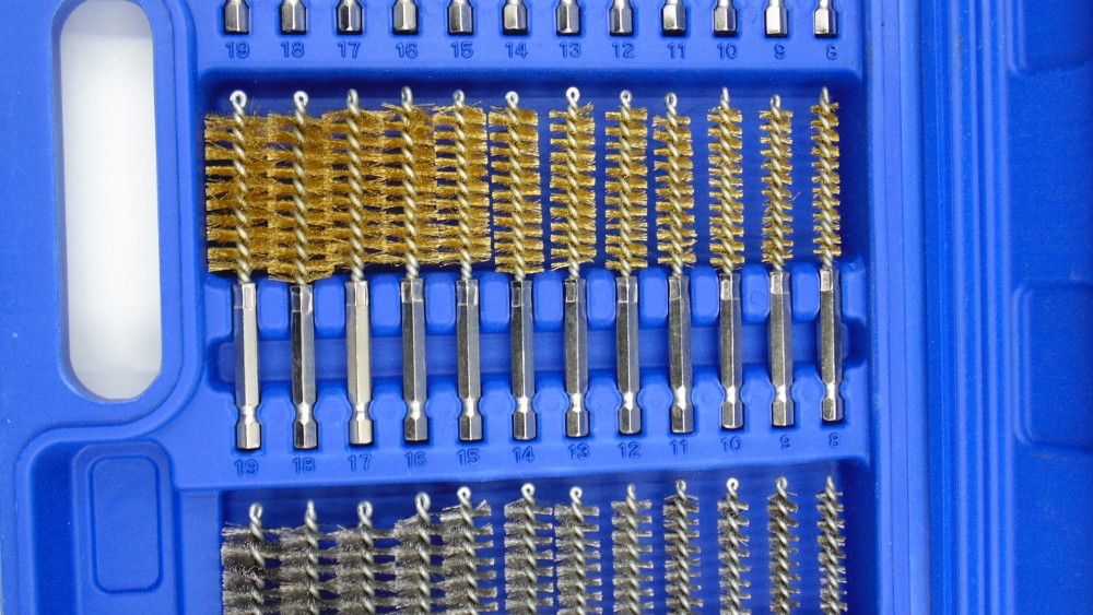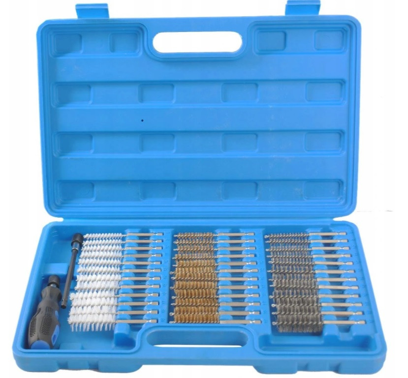 Birstu komplekts netīrumu un zāģu skaidu noņemšanai no urbumiem, caurulēm, sprauslu ligzdām, aizdedzes svecēm.