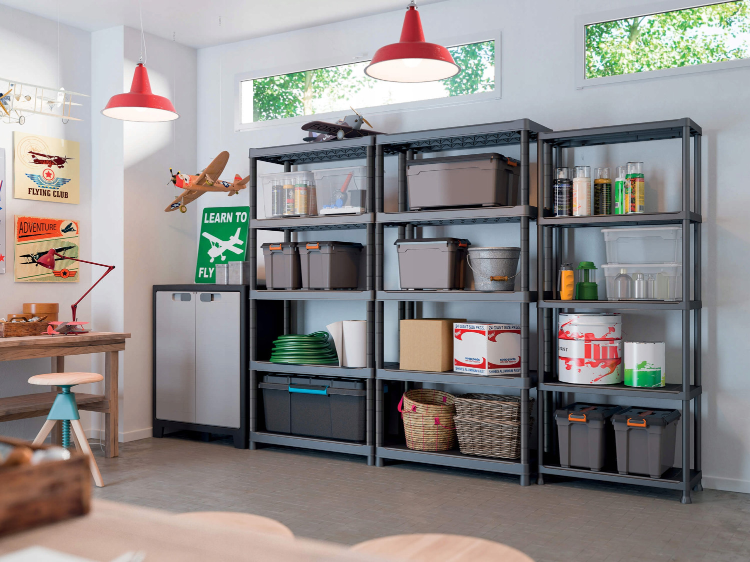 Plastmasas plaukts būs idēāls risinājums darbnīcā, pagrabā un garāžā.