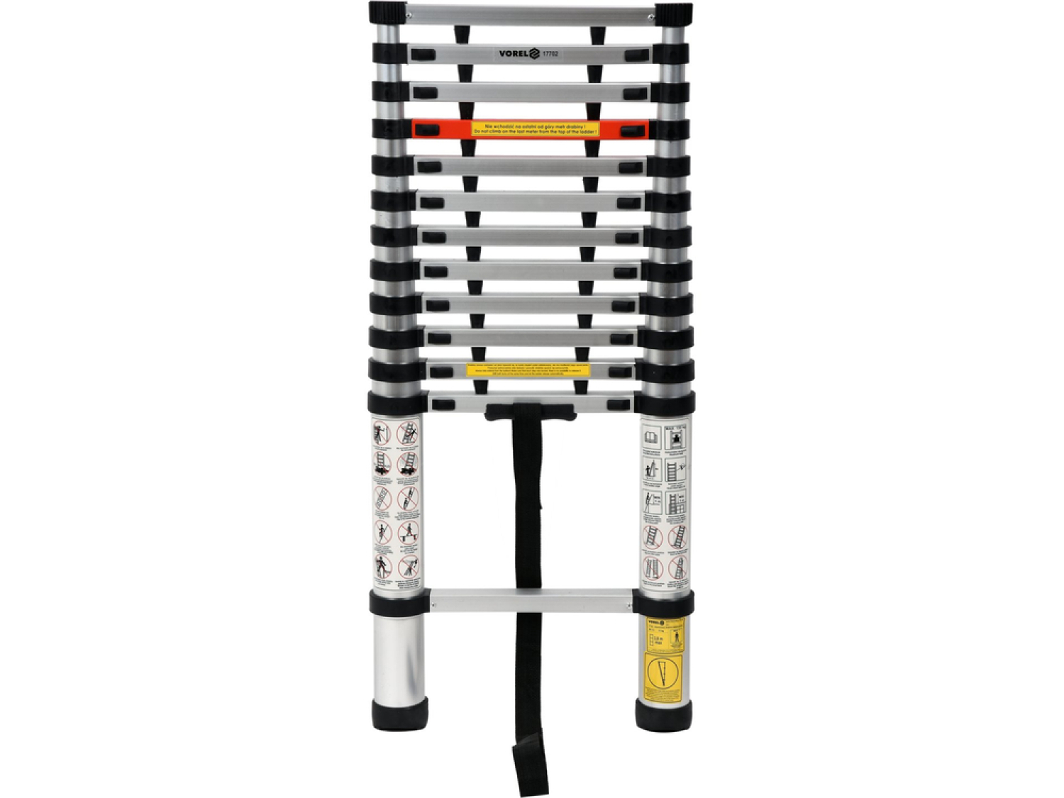 VOREL alumīnija teleskopiskās kāpnes, modeli 17702, ir ideālas kāpnes, kuras var izmantot darbam augstumā mājās, dārzā, noliktavā, darbnīcā un būvlaukumā.