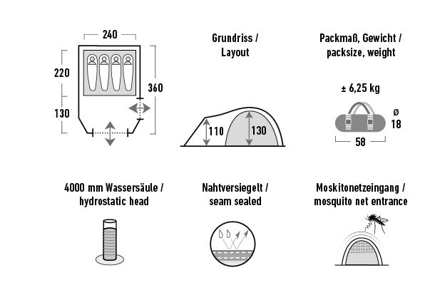 Mesos 4 telts piedāvā izmitināšanu 4 personām vai pietiekami daudz vietas 3 personām ar bagāžu.