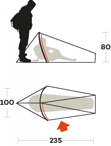 Sintesi 1 ir īpaši viegla un vienkārša telts vienai personai: mazāk par kilogramu, minimālam pajumtei jūsu riteņbraukšanas vai pastaigas laikā.