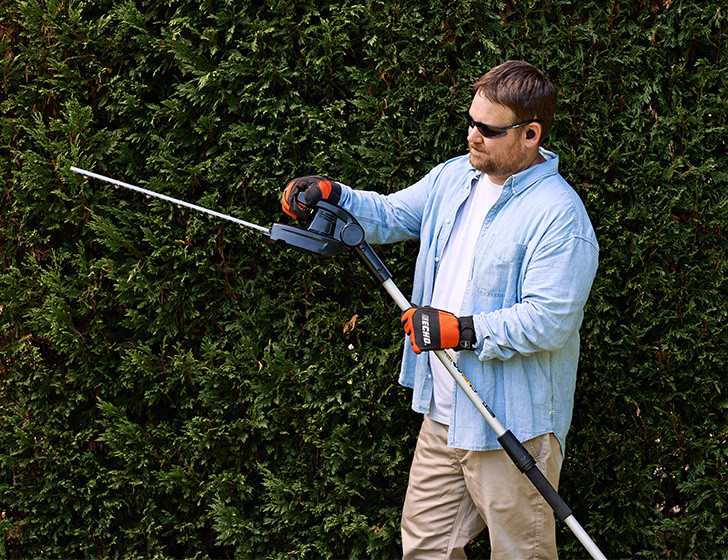 Ar kopējo garumu 246 cm un šarnīrveida asmeni ar minimālu piepūli varat tikt galā ar augstiem un lieliem dzīvžogiem.